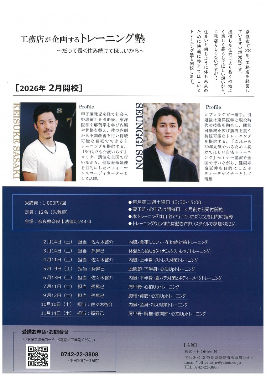 “良い家”だからこそ、長く健康に住み続けてほしい オフィスエヌ presents「健康寿命UPトレーニング塾」2026年2月開講